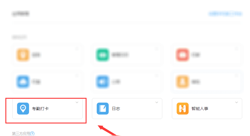 3、在工作台里找到考勤打卡,点击它