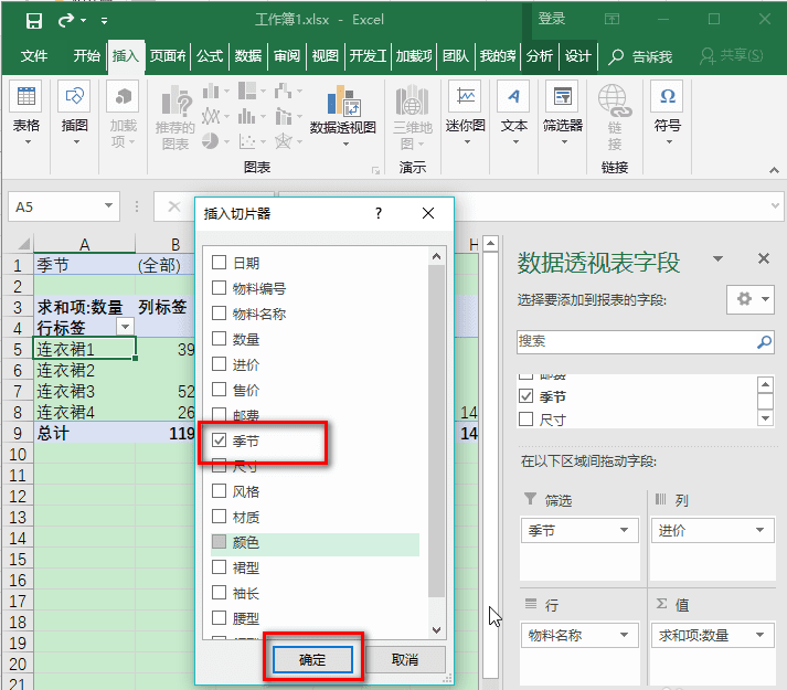 5、默认是单选,点击了“多选”按钮之后,可以同时选择多个季节下数据汇总。点击漏斗加叉号按钮,可以取消筛选,恢复默认的全选状态。