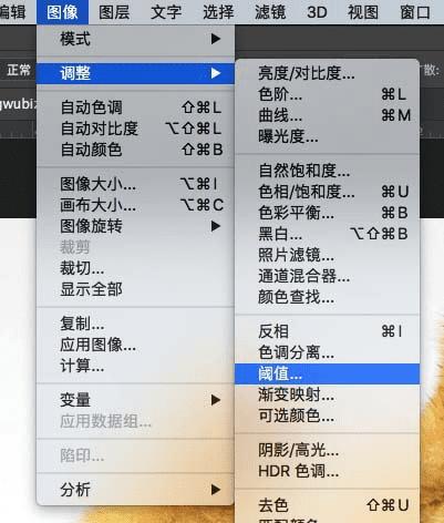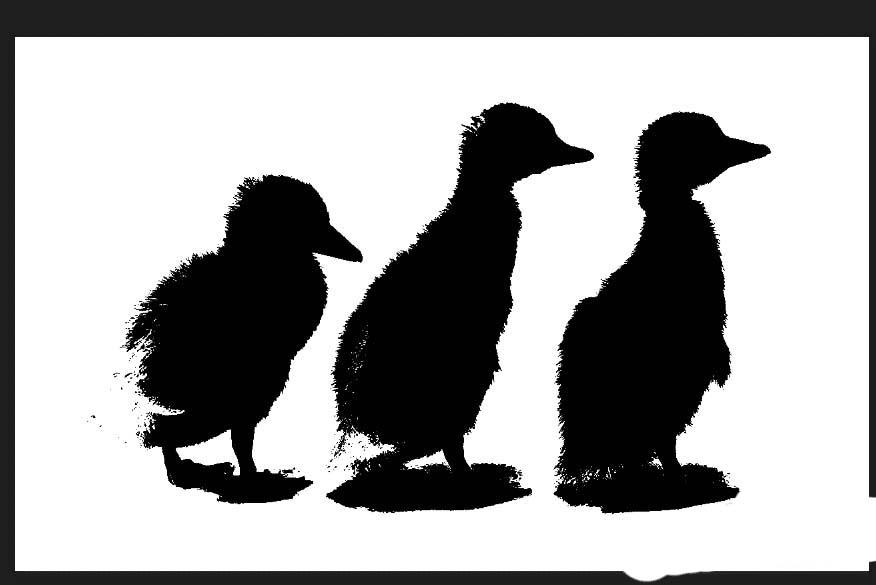 2、找到调整-阈值,将图像转为黑白两色,提取出小鸭子的轮廓。将阈值参数往右拉,直到你觉得合适为止。