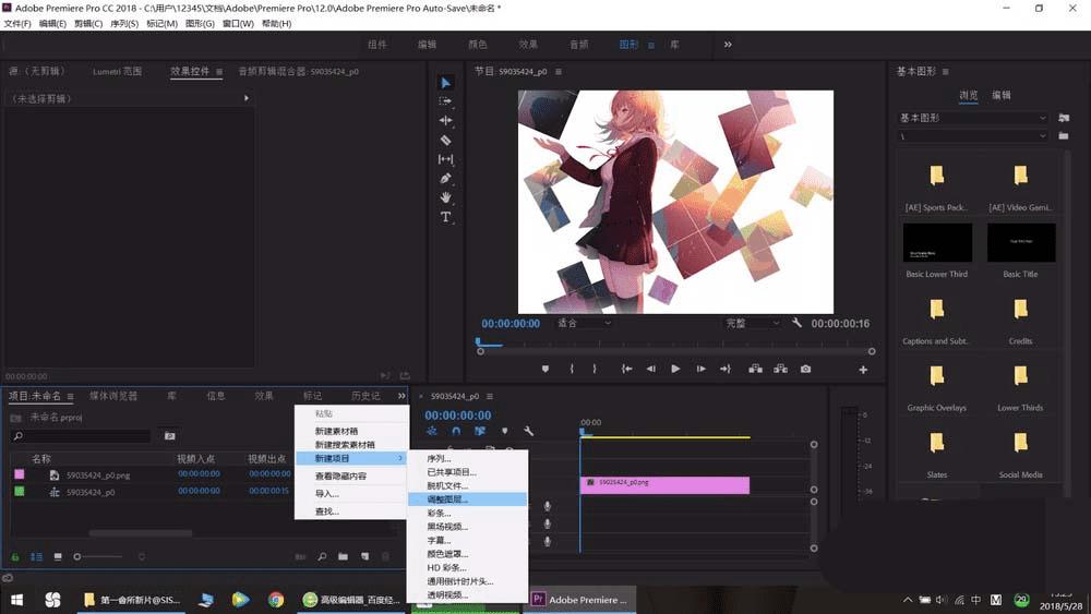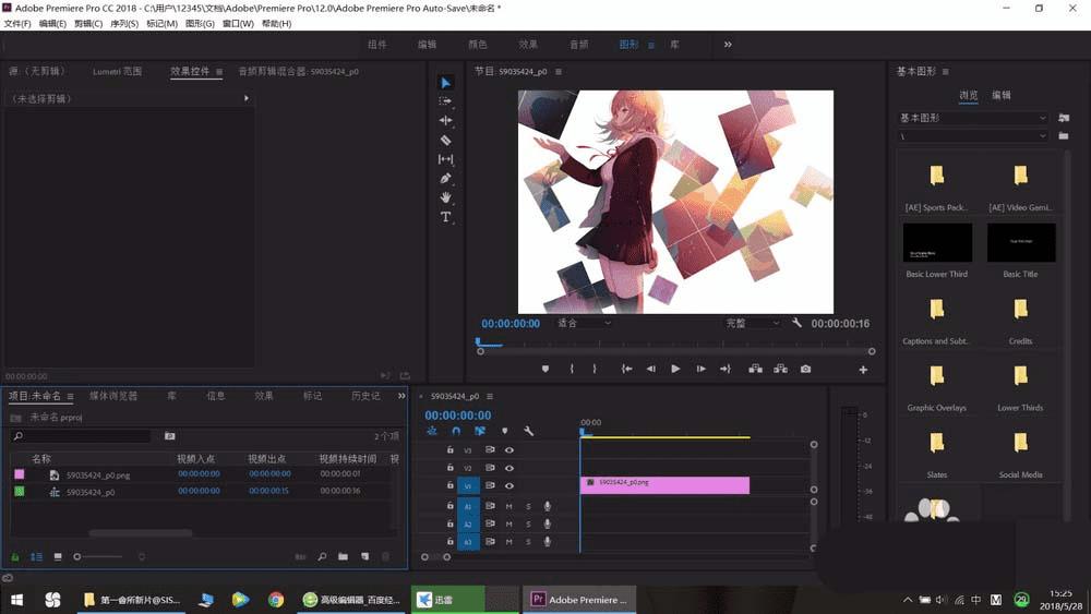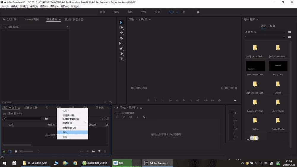 1、首先打开我们的pr软件,然后在我们的项目栏编辑上我们的背景图片或者是视频。