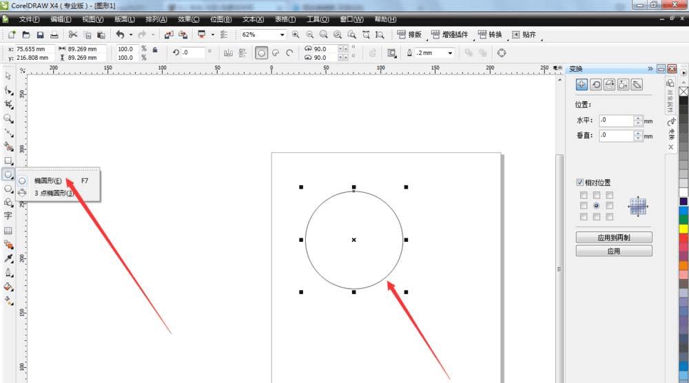 2、单击椭圆工具按住Ctrl键化一个正圆,调整好大校