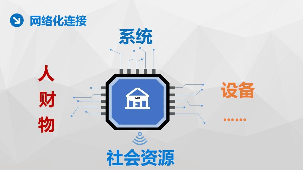网络化是指利用通信技术(例如:5G)、云计算、IOT、大数据等技术实现对人、财、物、设备、信息系统、社会资源的连接和联通,包括:企业内部数据联通、产业上下游数据联通、设备端到端数据联通、企业与社会资源数据联通。这种联通不是简单的数据集成,而是基于深度神经网络的连接,自发现式数据关系,自动化建立连接。