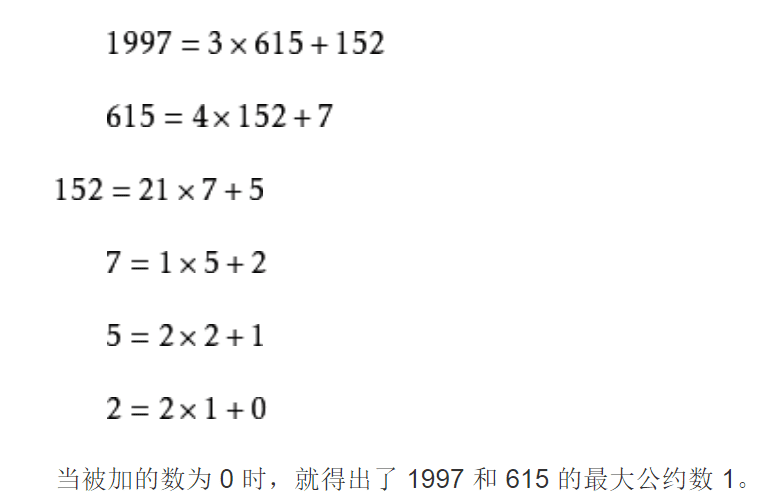 eg。求1997 和 615的最大公因子