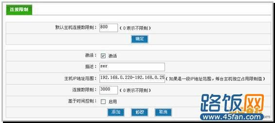 默认主机连接数限制:默认对所有主机的连接数限制,0表示不限制。