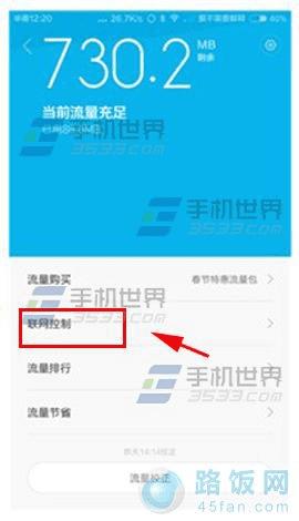 如何限制小米4手机中的软件联网? 来源:www.45fan.com 2015-05-24 15:55:38 手机中的应用开的太多流量一不小心就用完了,那么小米4手机如何限制软件联网呢? 1)打开小米4自带的【安全中心】点击【设置】打开【联网控制】。 2)根据所需限制软件联网即可。 推荐阅读