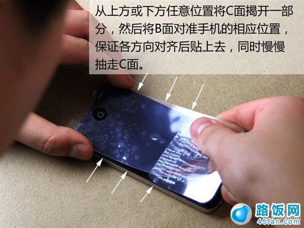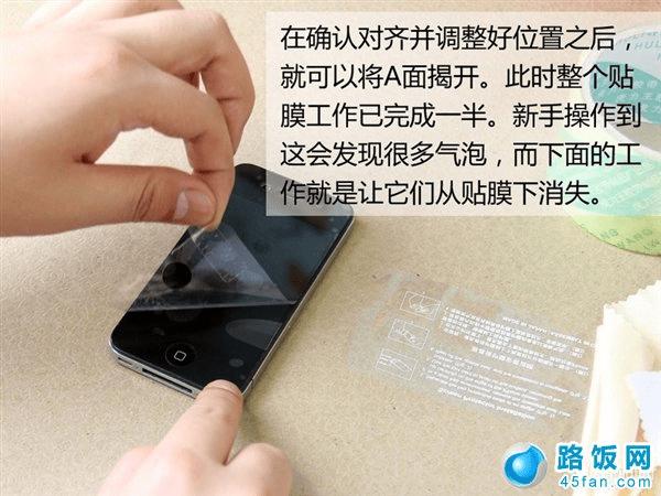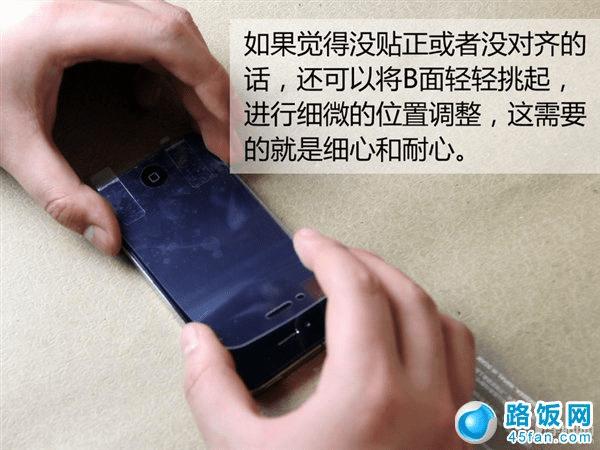 如果是在贴上后才发现错位的话也不要紧,只需将B面再次揭起来,然后重新比对贴上去就行。在这个过程中,注意不要让灰尘进入到屏幕和贴膜之间。