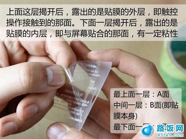 除了操作方便外,我们还可以先将A面撕下贴在屏幕上,借此来将灰尘粘掉,这也算是一个小技巧。