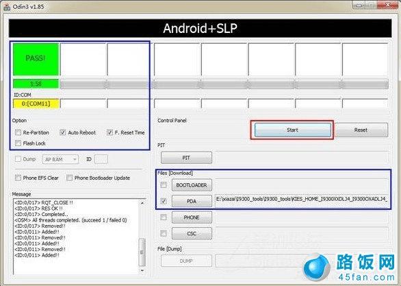 确认手机连接成功后,点击Start,等待完成,出现下图说明刷机成功,完成后会自动重启。