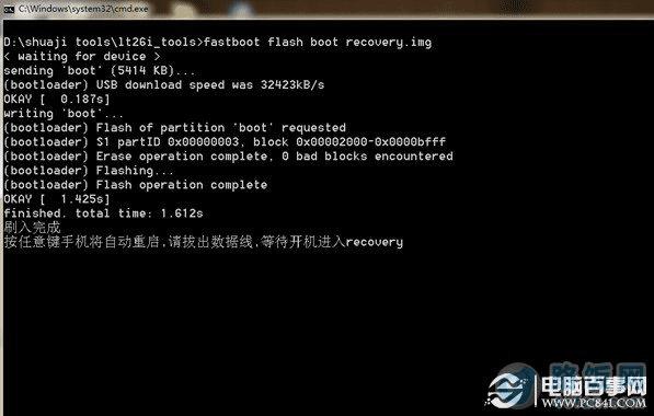 注意:按照以上步骤没有进入recovery,表示解锁未成功,请重新按照前面的步骤官方解锁。