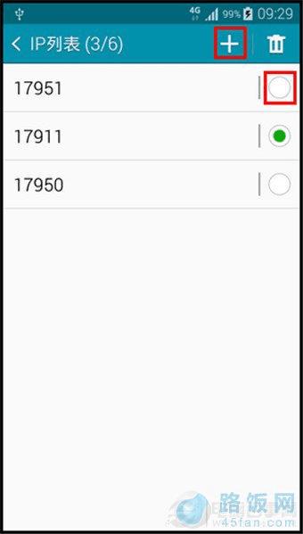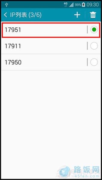 5,点击屏幕右上方的【+】图标,可添加IP号码,如您想使用的IP号码在列表中有显示,直接选择即可,这里以直接选择【17951】为例。如下图所示:
