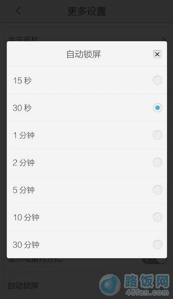 如何设置Android手机自动锁屏时间? 来源:www.45fan.com 2015-02-17 09:48:22 手机长时间不用屏幕一直亮着即耗电又不安全,自动锁屏功能就能很好的解决这个问题,下面小编以vivo手机为例介绍Android手机自动锁屏的设置时间。 第一步:打开手机桌面上的【设置/设定】 第二步:向下滑动,选择【更多设置】 第三步:选择底部的【自动锁屏】 第四步:选择锁屏的时间。(个人推荐30秒或者1分钟) 推荐阅读